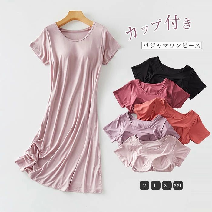 カップ付き ルームウェア 夏 半袖 ワンピース カップ付き パジャマ レディース 夏用 可愛い かわいい ランジェリー 部屋着 ナイト 大人 寝巻き ナイトウェア ゆったり 涼しい 柔らかい 快適 大きいサイズ 春 夏 薄手 無地 シンプル 4,807 ~