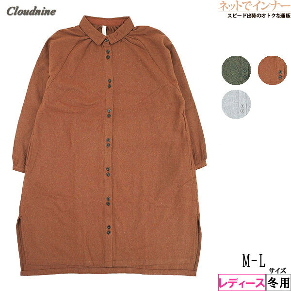 Cloudnineレディースの毛混フランネルワンピース。 暖かみのあるフランネルの風合いとしっかりした厚みが心地よい生地感。 ラグラン袖やネックのギャザーがふんわりとしたシルエットを生み出しカジュアルなシルエットに。 前開き、ミニ襟付き、袖口カフスボタン開き仕様でギャザー入り。 裾両サイドカット、深さ:前19cm、後24cm 脇にスラッシュポケット付き。 ボタン2段目は飾りボタン仕様。 前を開けて羽織感覚でも活躍するアイテムです。 【メーカー】ノンノ(株) (NOP1750) 【素材】本体:ポリエステル56%・アクリル18%・レーヨン10%・ナイロン8%・毛7%・綿1% 別布:ポリエステル80%・綿20%(シーズン:冬用)【生産国】 中国製 【カラー】 ライトグレー、オレンジ、カーキ 【サイズ】 M-L ※パッケージ、生産国は予告なく変更になる場合がございます。 ※お客様のモニターの設定(携帯・スマホの機種)、照明等の環境により、実際の色と若干異なって見える可能性がございます。 【関連キーワード】ルームウェア(部屋着)/ワンピース/敬老の日/おじいちゃん/おばあちゃん/祖父/祖母/ありがとう/ギフト/プレゼント/実用品/実用的//部屋着/ルームウェア/セットアップ/ホームウェア Cloudnine レディース 毛混フランネル前開きシャツワンピース 冬用 NOP1750[M-Lサイズ] 4,840 ~