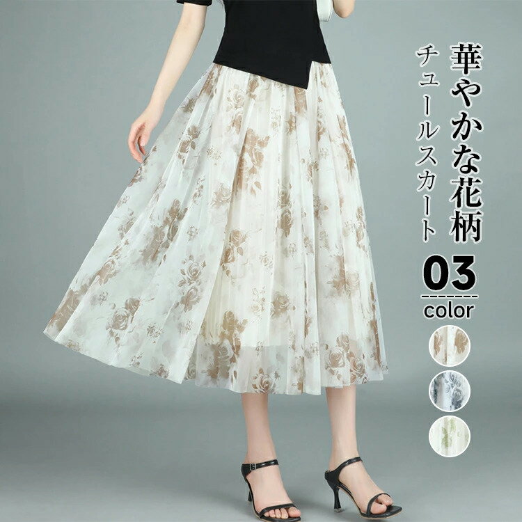 スカート レディース 春 夏 チュールスカート 花柄スカート ロングスカート フレアスカート プリントスカート ボリューム ロング丈 ミレ丈 ひざ丈 ウエストゴム Aライン 裹地付き 大人可愛い 大きいサイズ おしゃれ きれいめ 体型カバー 30代 40代 50代 60代 送料無料 3,280 ~