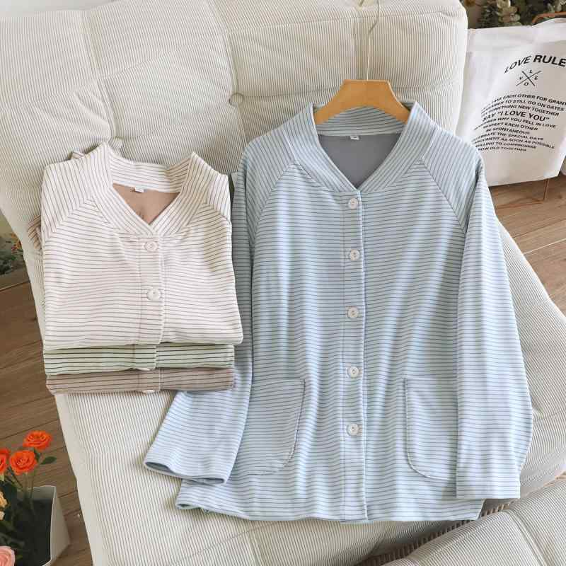 ・カテゴリ: パジャマ・素材: ポリエステル繊維・素材構成: デルロン 95%〜100%未満・厚さ: 厚手・ネックライン: スタンドカラー・袖丈: 長袖・用途: ルームウェア・カラー展開: グリーン、ベージュ、ライトブルー、ライトブラウン・サイズ展開: M、L、XL・スタイル: シンプルカジュアル