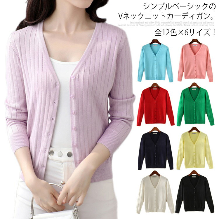 全12色選べる!カーディガン レディース ニットカーディガン Vネック 長袖カーディガン ショート丈 シンプル ベーシック 春 秋 コンパクト 羽織り送料無料 2,900 ~