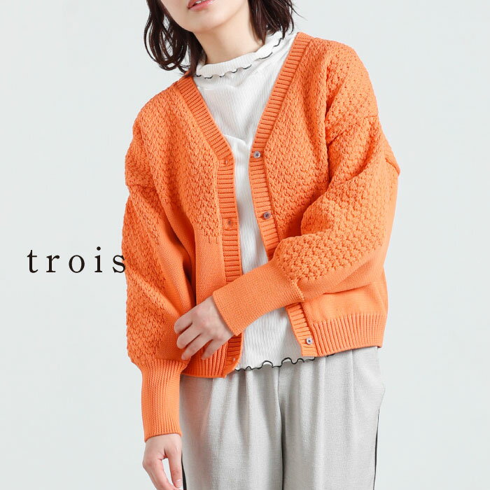 【60%OFFクーポン配布中!】trois トロワ 2023ss 柄編み ショート丈袖 コクーン カーディガン T231-88003 夏 サマーニット ニット カーデ ニットカーデ ショート丈 レディース 即日発送 送料無料 15,400 ~