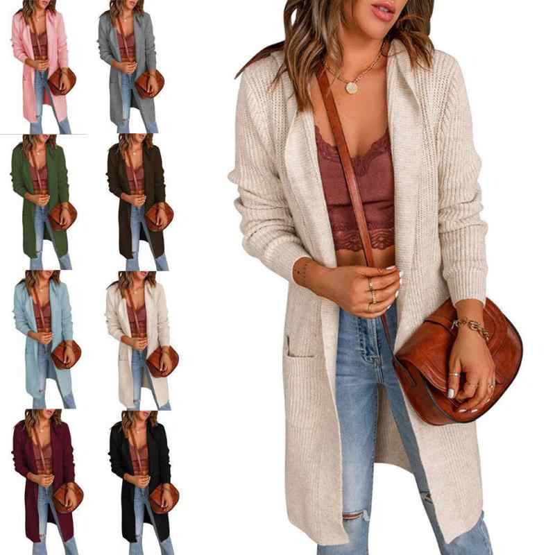 ・素材: ポリエステル・柄: 無地・厚み: 中厚・タイプ: 開襟・組み合わせ: 単品・シルエット: レギュラー・着丈: ミディアム(50cm超65cm以下)・襟型: フード・袖丈: 長袖・袖型: 標準・ディテール: ポケット・加工: スプライス・カラー: ブラック,グレー,アプリコット,ワインレッド,ライトブルー,ミリタリーグリーン,ピンク,ダークブラウン・サイズ: S,M,L,XL,2XL,3XL・スタイル: ストリート・ポリエステル含有率: 30%-50%・対象性別: 女性・対象年齢: 成人 秋冬 レディース フード付き ニットセーター 中長丈 長袖 無地 暖かみ コート風 トップス セーター ニット カーディガン風 レイヤード スタイル 5,823 ~