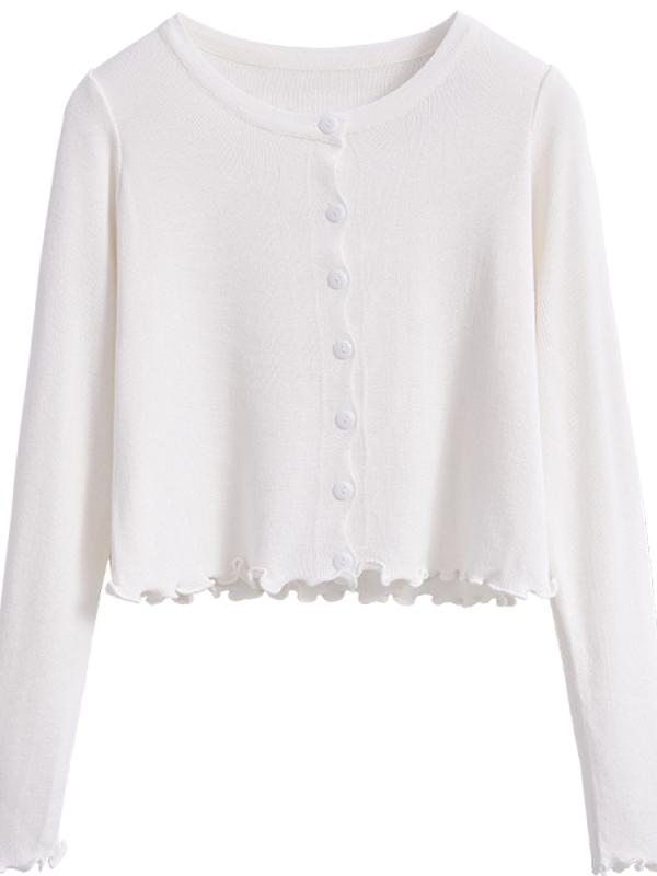 カーディガン 薄手 レディース ニット 春秋 大きいサイズ かわいい フェミニン 多用途 日焼け防止 ショート丈 長袖 ボタン 黒 白 紫