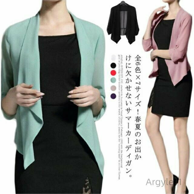 数量限定クーポン配布中●【送料無料】無地 シンプル 七分袖 羽織り シフォン シフォンカーディガン サマー カーディガン サマージャケット 4,220 ~