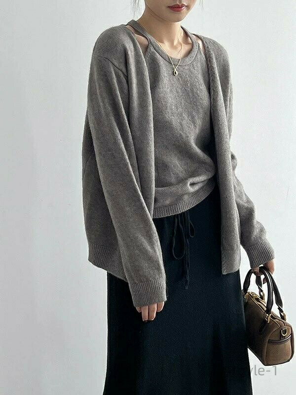 数量限定クーポン配布中●【送料無料】ゆったり 春アウター 秋冬 おしゃれ 学生 レディース ニット 大きめ 2点セットゆたり キャミソールトップ 5,710 ~