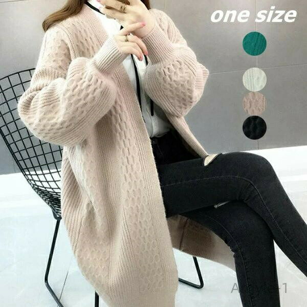 数量限定クーポン配布中●【送料無料】レディース 秋冬 ニットカーディガン 長袖 ロングカーディガン 前開き 無地 羽織り トップス バルーン袖 4,180 ~