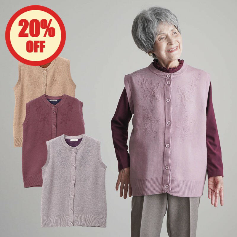 【20%OFF】シニアファッション レディース 80代 70代 60代 90代 秋冬 花刺しゅう裏ボアニットベスト おばあちゃん 服 プレゼント 婦人服 女性 ミセス 祖母 お年寄り 老人 高齢者 ギフト 4,786 ~