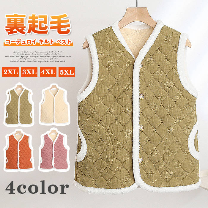 コーデュロイ キルト ベスト レディース 秋冬 パールボタン 大きいサイズ パイピング デザイン ひし形 キルティング 中綿入り 防寒 裏起毛 おしゃれ 厚手 アウター カジュアル 大人可愛い 韓国ファッション 2,412 ~