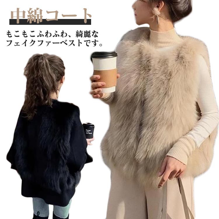 柔らかな肌触りで、見た目も着心地も暖かく、この冬必須のアイテムです。 もこもこふわふわ、綺麗なフェイクファーベストです。 女性らしい魅力と可愛さを演出でき、暖かさと防寒性も叶える大活躍の一枚です!華やかな存在感があり、スタイリングをプラッシュアップしてくれます。 ワンピースやデニムなど、手持ちアイテムに合わせることで、コーデが一気に華やぎます! サイズ S M L XL サイズについての説明 【S】着丈58cm バスト100cm【M】着丈59cm バスト104cm【L】着丈60cm バスト108cm【XL】着丈61cm バスト112cm※ サイズ表の実寸法は商品によって1-3cm程度の誤差がある場合がございます。 素材 ポリエステル 色 ブラック(中綿入り) ベージュ(中綿入り) ブラック(中綿なし) ベージュ(中綿なし) 備考 ●サイズ詳細等の測り方はスタッフ間で統一、徹底はしておりますが、実寸は商品によって若干の誤差(1cm〜3cm )がある場合がございますので、予めご了承ください。 ●商品の色は、撮影時の光や、お客様のモニターの色具合などにより、実際の商品と異なる場合がございます。 あらかじめ、ご了承ください。 ●製品によっては、生地の特性上、洗濯時に縮む場合がございますので洗濯時はご注意下さいませ。 ▼色味の強い製品によっては他の衣類などに色移りする場合もございますので、速やかに(脱水、乾燥等)するようにお願いいたします。 ▼生地によっては摩擦や汗、雨などで濡れた時は、他の製品に移染する恐れがございますので、着用の際はご注意下さい。 ▼生地の特性上、やや匂いが強く感じられるものもございます。 数日のご使用や陰干しなどで気になる匂いはほとんど感じられなくなります。