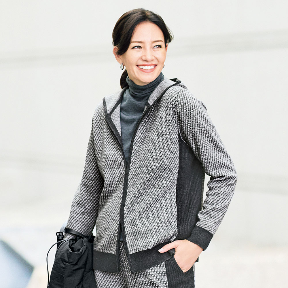 アクティブに輝く!スマートスタイル陽射しに誘われて出掛ければ、風が心地よく感じられて??。 端境期をアクティブに過ごす、洗練スタイル。 お洒落心が満ちる、ラグジュアリーなニットアップ。 過去にご好評をいただいたアイテムが、グレートーンの新柄でリバイバルしました。 人気の秘訣は、ラグジュアリー感漂うジャカード・デザイン。 ウールコットンを小紋柄に繊細に編み立てて大人の一着に昇華、上下に走る太幅リブのサイドラインが細見えを誘います。 フーデッドパーカはダブルファスナーが付いて、こなれ感のあるスタイリングが叶います。 フード中央にもリブの切り替えを入れ、後ろ姿のアイポイントにしました。 ページ下部に画像の説明がございます。 一部別売りの商品もございますので、説明文ご確認のうえご注文ください。 >画像の説明はこちら<仕様・サイズこの商品はセール品のため返品できません■色:チャコールグレー系■素材:毛55・綿45%■前中心ダブルファスナー開き■フード付き(取り外し不可)■原産国:中国製■商品により、柄の出方が多少異なります。 ◆サイズ(cm)【S】バスト 96バスト(適応) 72着丈 56肩幅 35.5袖丈 56袖口幅 8ゆき丈 74袖回り 31袖付幅(袖ぐり幅) 20.5襟天幅(外) 19.5裾回り 90裾のリブ長さ(前) 6裾のリブ長さ(後) 6ウエスト(適応) 58ヒップ(適応) 82重量(約g) -【M】バスト 100バスト(適応) 79着丈 58肩幅 36.5袖丈 57袖口幅 8.5ゆき丈 75.5袖回り 32袖付幅(袖ぐり幅) 21襟天幅(外) 19.5裾回り 94裾のリブ長さ(前) 6裾のリブ長さ(後) 6ウエスト(適応) 64ヒップ(適応) 87重量(約g) 460【L】バスト 104バスト(適応) 86着丈 60肩幅 37.5袖丈 58袖口幅 9ゆき丈 77袖回り 33袖付幅(袖ぐり幅) 21.5襟天幅(外) 19.5裾回り 98裾のリブ長さ(前) 6裾のリブ長さ(後) 6ウエスト(適応) 69ヒップ(適応) 92重量(約g) -【LL】バスト 108バスト(適応) 93着丈 60肩幅 38.5袖丈 59袖口幅 9.5ゆき丈 78.5袖回り 34袖付幅(袖ぐり幅) 22襟天幅(外) 19.5裾回り 102裾のリブ長さ(前) 6裾のリブ長さ(後) 6ウエスト(適応) 77ヒップ(適応) 97重量(約g) -【3L】バスト 112バスト(適応) 100着丈 62肩幅 39.5袖丈 60袖口幅 10ゆき丈 80袖回り 35袖付幅(袖ぐり幅) 22.5襟天幅(外) 19.5裾回り 106裾のリブ長さ(前) 6裾のリブ長さ(後) 6ウエスト(適応) 85ヒップ(適応) 102重量(約g) -※商品によっては、中心サイズを参考重量として掲載しています。 【送料マーク:A】 この商品の販売価格には配送料880円(税込)が含まれています。 画像の説明コーディネート例コーディネート例back 【クーポン最大5千円OFF 3/4 20時から4h限定】 ウールコットン ニットジャカード パーカ パーカー スウェット トレーナー 142302 \LINE友だち登録でクーポン/ 25,680 ~