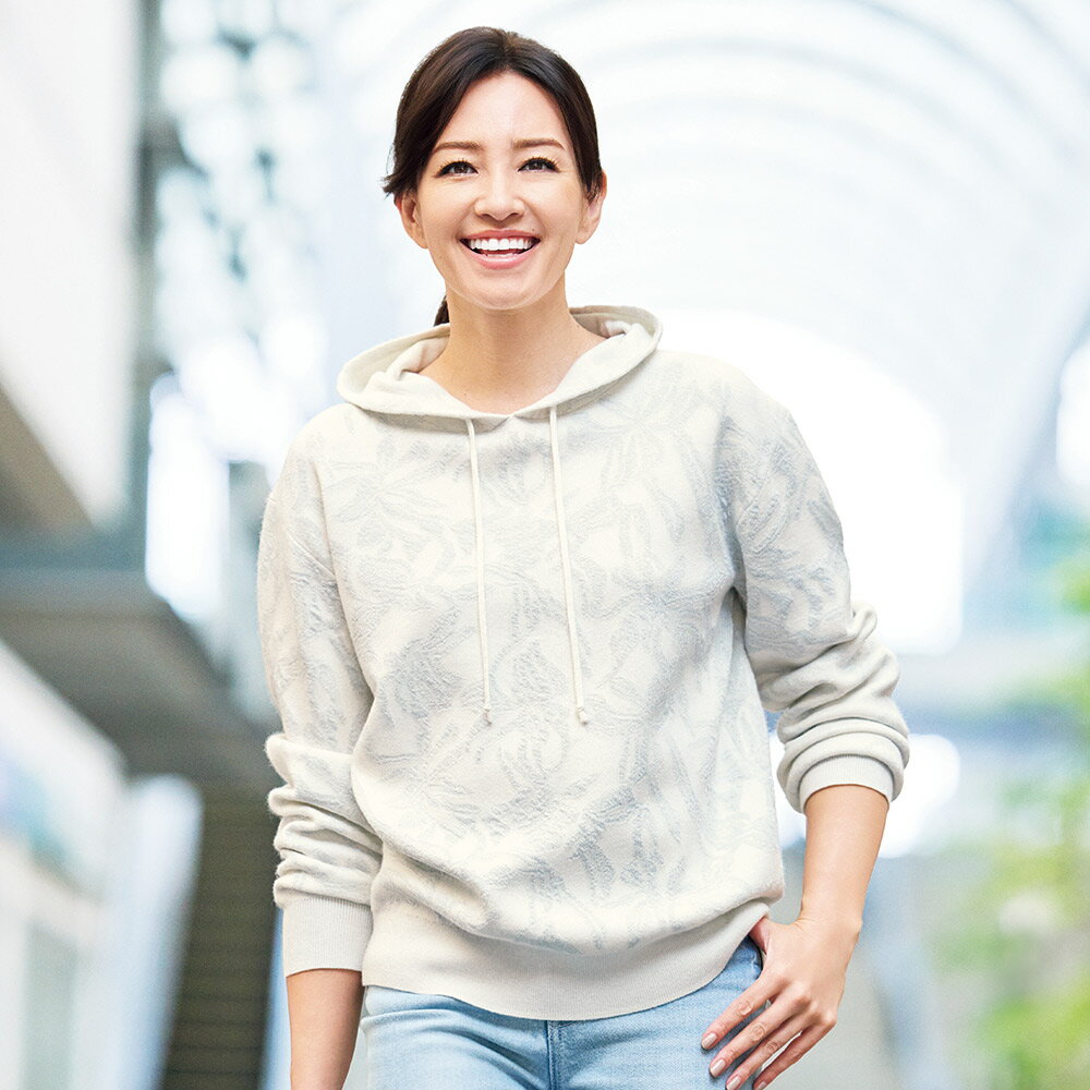 アクティブに輝く!スマートスタイル陽射しに誘われて出掛ければ、風が心地よく感じられて??。 端境期をアクティブに過ごす、洗練スタイル。 ヘルシー見えの合い言葉は“美技”プルオーバー。 フレッシュな一着をお探しなら、草花柄が薫るフーデッドプルオーバーはいかがでしょう?浮かび上がるグレーの柄行きはジャカード編みで立体的に表現しているから、さりげなくも華やかな印象。 微かに輝くラメの光も洗練のスパイスになります。 素材は、ウールを含む拘りの四者混。 特性の違う糸をバランス良く混ぜ、ふんわりした着心地と型崩れしにくさを両取りしています。 素材に表情がある分、デザインはシンプルに。 カジュアルになり過ぎないようバランス良くコンパクトに仕立て、裾・袖口はリブ編みにすることでクールに引き締めました。 ページ下部に画像の説明がございます。 一部別売りの商品もございますので、説明文ご確認のうえご注文ください。 >画像の説明はこちら<仕様・サイズこの商品はセール品のため返品できません■色:オフホワイト×シルバーラメ■素材:ポリエステル55・レーヨン30・ナイロン10・毛5%■フード付き(取り外し不可)■フード周りドローストリング仕様■原産国:中国製■商品により、柄の出方が多少異なります。 ◆サイズ(cm)【S】バスト 96バスト(適応) 72着丈 54肩幅 44袖丈 52.5袖口幅 8.5ゆき丈 74.5袖回り 33袖付幅(袖ぐり幅) 19襟天幅(外) 23裾回り 86裾のリブ長さ(前) 6裾のリブ長さ(後) 6ウエスト(適応) 58ヒップ(適応) 82重量(約g) -【M】バスト 100バスト(適応) 79着丈 56肩幅 45袖丈 53.5袖口幅 9ゆき丈 76袖回り 34袖付幅(袖ぐり幅) 19.5襟天幅(外) 23裾回り 90裾のリブ長さ(前) 6裾のリブ長さ(後) 6ウエスト(適応) 64ヒップ(適応) 87重量(約g) 450【L】バスト 104バスト(適応) 86着丈 58肩幅 46袖丈 54.5袖口幅 9.5ゆき丈 77.5袖回り 35袖付幅(袖ぐり幅) 20襟天幅(外) 23裾回り 94裾のリブ長さ(前) 6裾のリブ長さ(後) 6ウエスト(適応) 69ヒップ(適応) 92重量(約g) -【LL】バスト 108バスト(適応) 93着丈 58肩幅 47袖丈 55.5袖口幅 10ゆき丈 79袖回り 36袖付幅(袖ぐり幅) 20.5襟天幅(外) 23裾回り 98裾のリブ長さ(前) 6裾のリブ長さ(後) 6ウエスト(適応) 77ヒップ(適応) 97重量(約g) -【3L】バスト 112バスト(適応) 100着丈 60肩幅 48袖丈 56.5袖口幅 10.5ゆき丈 80.5袖回り 37袖付幅(袖ぐり幅) 21襟天幅(外) 23裾回り 102裾のリブ長さ(前) 6裾のリブ長さ(後) 6ウエスト(適応) 85ヒップ(適応) 102重量(約g) -※商品によっては、中心サイズを参考重量として掲載しています。 【送料マーク:A】 この商品の販売価格には配送料880円(税込)が含まれています。 画像の説明コーディネート例コーディネート例コーディネート例コーディネート例 【クーポン最大5千円OFF 3/4 20時から4h限定】 フラワー柄 ニットジャカード フーデッド プルオーバー パーカー スウェット トレーナー 142601 \LINE友だち登録でクーポン/ 22,680 ~