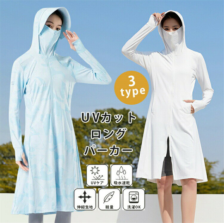 UVカット パーカー ラッシュガード レディース ミディアム丈 ロング丈 全身カバー 接触冷感 涼しい UVカット 日焼け防止 UPF50+ 遮蔽率99.9%達成 360度紫外線対策 接触冷感 夏 薄手 長袖 羽織 ラッシュパーカー スポーツ マスク フード付き 日焼け対策 吸湿 速乾 5,530 ~