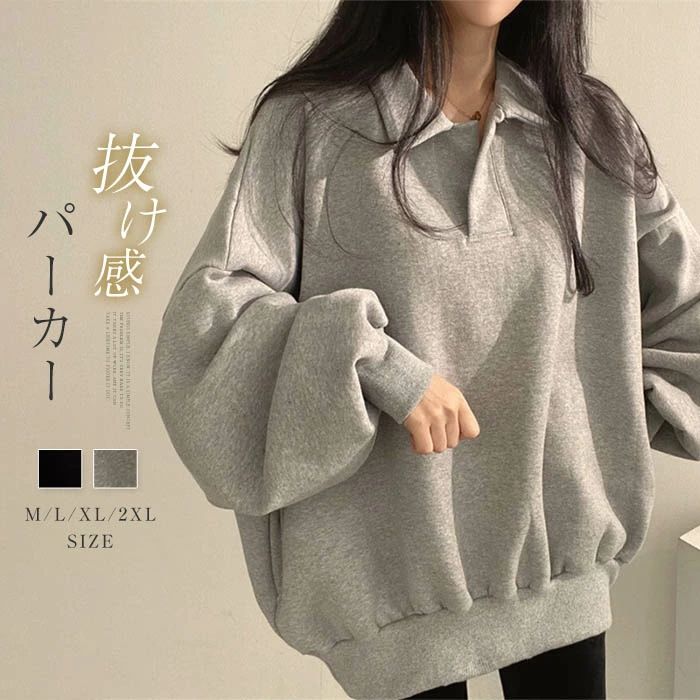 【最大P10】大きいサイ 無地 プルオーバーパーカー 襟付き 長袖 トップス プルオーバー トレーナー tシャツ 冬 秋 春 レディース スウェット 3,690 ~