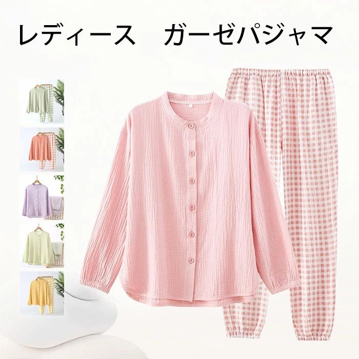 ガーゼパジャマ レディース パジャマ 上下セット 春秋 コットン素材 長袖 前開き パンツ チェック柄 レディースパジャマ かわいい 部屋着 カップル 夫婦 お揃い 大人用 パジャマセット 寝巻き 寝間着 女性用 入院 旅行 ルームウェア 柔らかい ナイトウェア 入院 出産 ギフト 3,560 ~