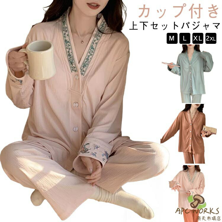 上下セット 大人 部屋着 パジャマ カップ付き 軽い 長袖 ルームウェア 長ズボン カップ付き 可愛い 寝巻き 着心地よい 女の子 大きいサイズ ロングパンツ ナイトウェア リラックス お出かけ ゆったり