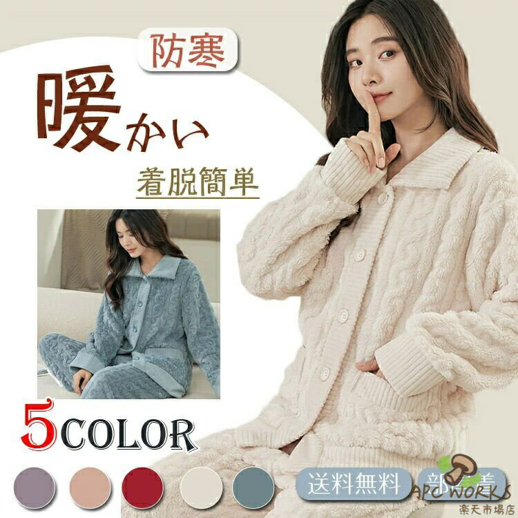 パジャマ レディース 冬 冬用 快適 前開き 着脱簡単 ルームウェア 女 部屋着 長袖 あたたかい ニット 上下セット 上下 裏起毛 パープル ピンク レッド ベージュ ブルー 厚地 女性 かわいい 可愛い 厚手 防寒 おしゃれ ゆったり