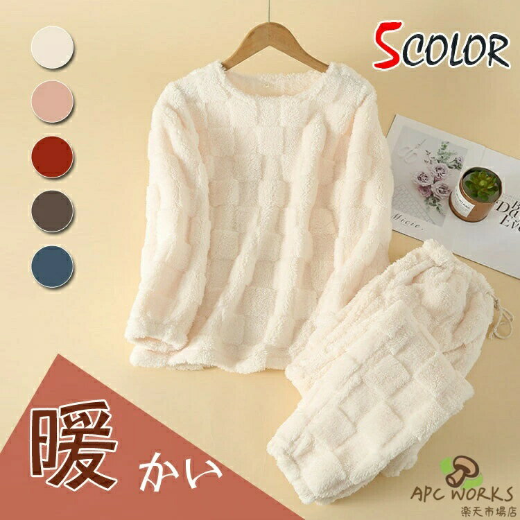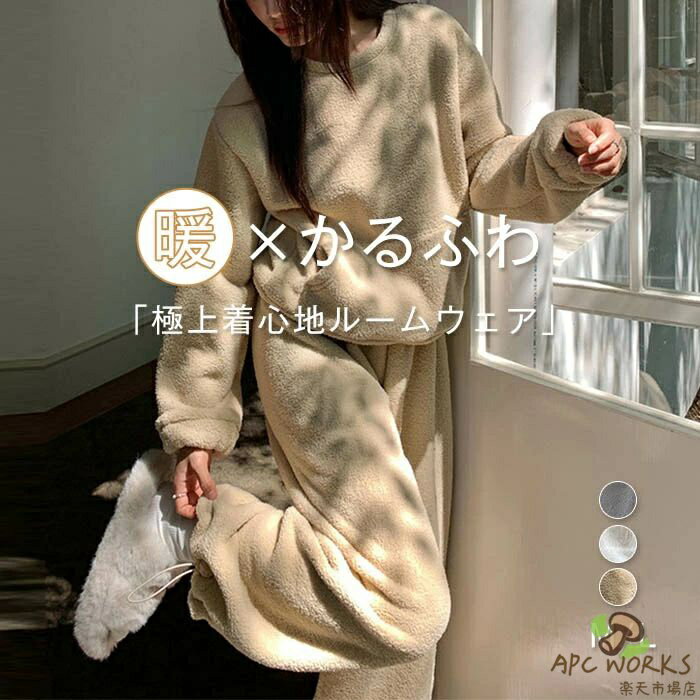 ルームウェア レディース 長袖 秋 冬 ふんわり もこもこ ボア 秋冬 防寒 保温 トップス 上下セット セットアップ パジャマ 寝巻き ふわふわ 2点セット パジャマ 寝間着 厚手 シンプル 寒さ対策 ウエストゴム ゆったり フリース 可愛い 着心地 快適 リラックス あったか