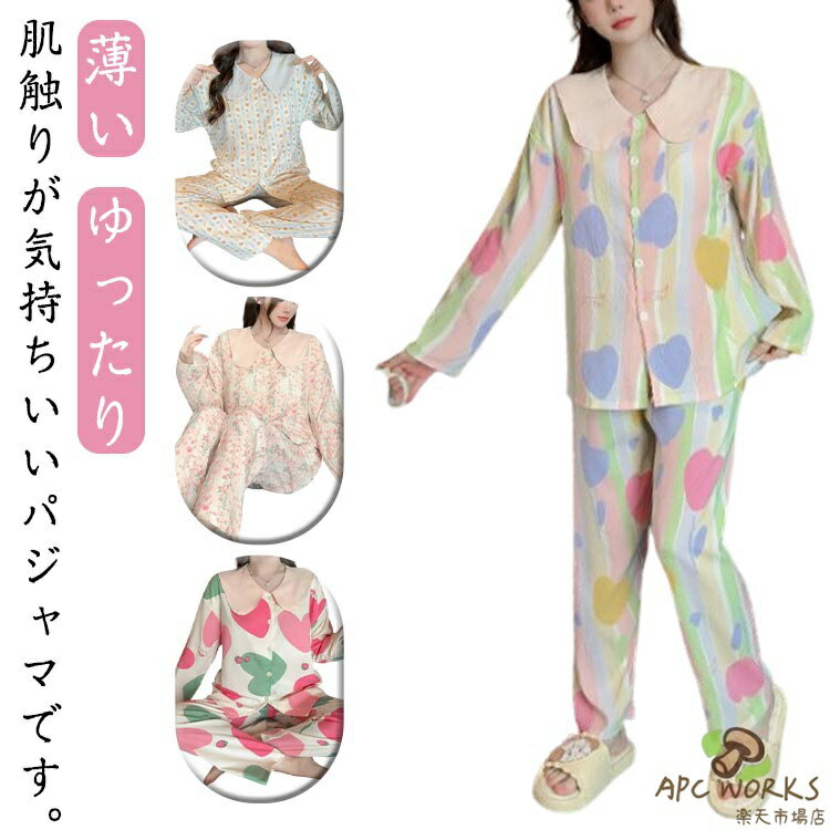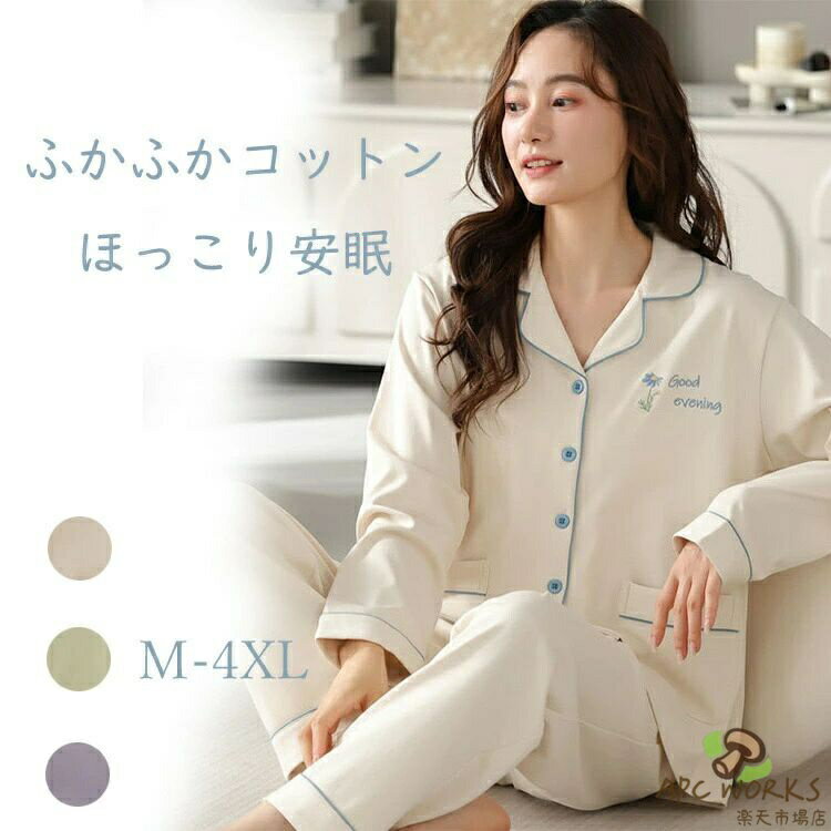 パジャマ レディース 夏用 長ズボン 秋 綿 コットン 前開き ポケット付き 安い 大きいサイズ 長袖 柔らか セットアップ 上下セット ルームウェア 部屋着 寝間着 可愛い 肌触り 韓国 ロングパンツ 薄手 吸汗 着心地 プレゼント 外出 入院 ギフト おしゃれ 母の日 敬老の日