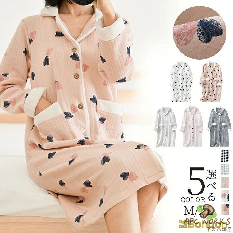\送料無料/ ルームウェア レディース パジャマ ワンピースもこもこ 冬 かわいい 綿 コットン 長袖 前開き ロング マイクロファー ネグリジェ ボーダー マタニティ モコモコ ふわふわ