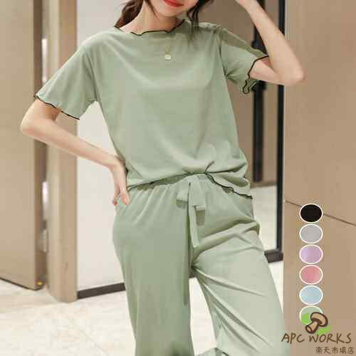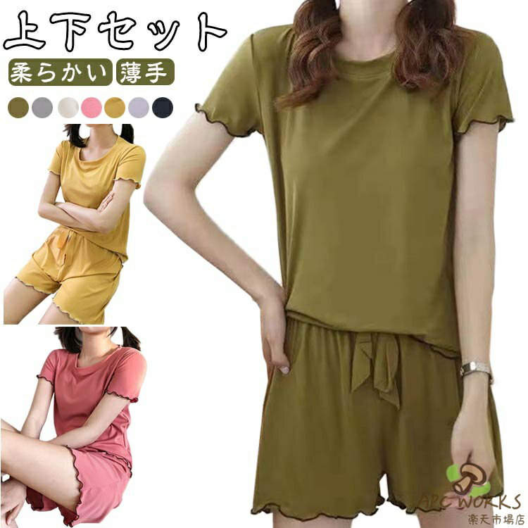 パジャマ レディース 上下セット フリル 夏 半袖Tシャツ ハーフパンツ 無地 カジュアル ルームウェア ズボン 部屋着 寝巻き 着心地 夏用 かわいい おしゃれ 涼しい 薄手 薄地 女性 可愛い 大人 柔らかい ゆったり