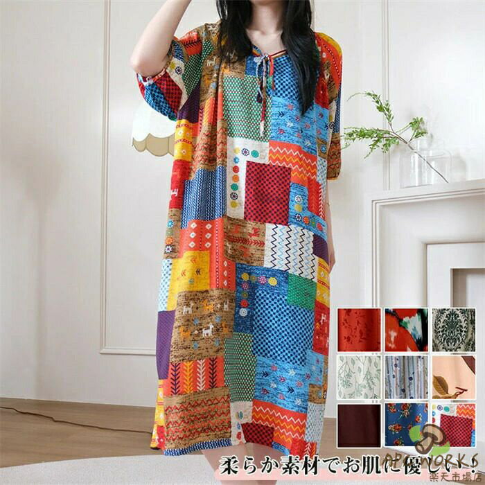 ネグリジェ ルームウェア レディース ワンピース 半袖 涼しい ボーダー 部屋着 織り 薄手 夏ミモレ丈 可愛い 寝巻き ルームワンピース 姫系 ボックスワンピ マタニティ シンプル ベーシック おしゃれ パジャマ チェック ストライプ 花柄