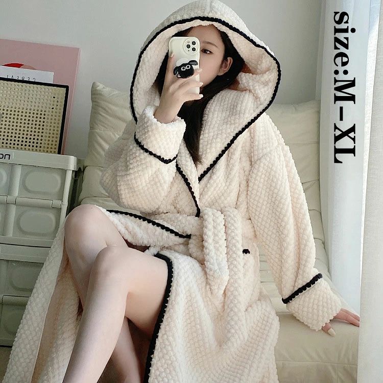 厚手 無地 長袖 ワンピース 熊 フランネル 新作 レディース フード付き ネグリジェ もこもこ ルームウエア 3,680 ~