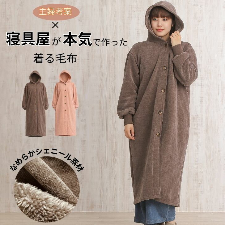 商品情報素材/材質ポリエステル100%サイズ/寸法フリーサイズ 着丈 110.0 肩幅 60.0 袖丈 58.0 (約)その他商品説明【素材とデザインへのこだわり】主婦の暮らし目線で考案し、寝具屋が素材と着心地にこだわって仕上げた着る毛布です。 私たちは、繊維の街・大阪で30年以上、寝具や繊維製品の企画・輸入・卸を手がけてきたメーカーです。 【一枚なのに、しっかりあたたかい】内側はふわふわのボア素材。 なめらかなシェニール素材と起毛ボアの組み合わせで、高い保温性を実現しました。 ロング丈(110cm)でありながら、軽量約880gの一枚仕立て。 軽やかな着心地なのに、寒さをしっかりブロックします。 2025-26シーズン注目の「パーソナル寒さ対策」として、暖房に頼りすぎず過ごしたい方にもおすすめです。 【家事や作業の邪魔にならない着心地】袖口はリブ仕様で、腕まくりがしやすく、家事や作業の際もストレスを感じにくい設計です。 寒い朝のキッチンや洗顔時にもさっと羽織れて便利。 ちょうど良い位置のポケットには、スマートフォンや眼鏡などの小物を収納できます。 【首元まで包み込んで、体感温度アップ】フードを被れば、頭から首元までやさしく包み込み、体感温度がぐっと上がります。 ロング丈なので、椅子に腰かけた際もひざ掛けが不要で、お尻や腰回りの冷え対策にも。 110cm丈は、日本人女性の平均的な身長(157cm前後)の方で、すねの真ん中あたりの長さ。 身長150cm前後の方でも引きずりにくく、足さばきの良い丈感です。 【多様なシーンで活躍】読書や趣味の時間など、日中のリビングでのくつろぎタイムに最適。 暖房を控えたい時の節電対策としても活躍します。 お風呂上がりの湯冷め防止や、夜遅くまで勉強を頑張る受験生にもおすすめです。 外側はシェニール素材のため、着る毛布とは思えないほど洋服ライクな見た目。 ポケットは外付けではなく、シームポケット仕様なので、すっきりとした印象に。 急な来客時や宅配対応の際も、そのまま着用でき、部屋着感が出にくいデザインです。 ゴミ出しや新聞の受け取り、家族の送り出しなど、ちょっとした外出も気になりません。 【サイズ】総丈110 / 身幅60 / 袖丈58【カラー】 コーラルピンク・ココアブラウン 【お手入れ】 洗濯機OK(ネット使用)【生産国】中国 (ISO9001認証 取得工場)検索用キーワード着る毛布 着るブランケット フード付き毛布 ルームウェア ガウン 部屋着 冬 防寒 あったか ロング丈 軽い 肩が凝りにくい シェニール 裏ボア ボア フード付き シームポケット 主婦考案 寝具屋 メーカー直販 大阪 寝具 洗える 節電 寒さ対策 冷え性 ギフト プレゼント着る毛布 フード付き【主婦考案】寝具屋が本気で作った なめらかシェニール×裏ボア 軽い一枚仕立て 肩が凝りにくい 110cm丈 あったか 部屋着 ギフト 「着たまま動ける」を本気で考えた、主婦発想の着る毛布。 年代問わず使いやすいデザインに仕上げました。 ギフトにもおすすめ。 5 本日P20倍!着る毛布 フード付き【主婦考案】寝具屋が本気で作った なめらかシェニール×裏ボア 軽い一枚仕立て 肩が凝りにくい 110cm丈 あったか 部屋着 ギフト 5,200 ~