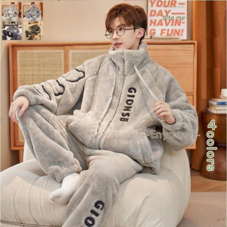 かわいい 部屋着 冬 長袖 秋冬 パジャマ ペア カップル ルームウェア もこもこ フランネル 2着セット 上下セット ペアパジャマ 6,425 ~