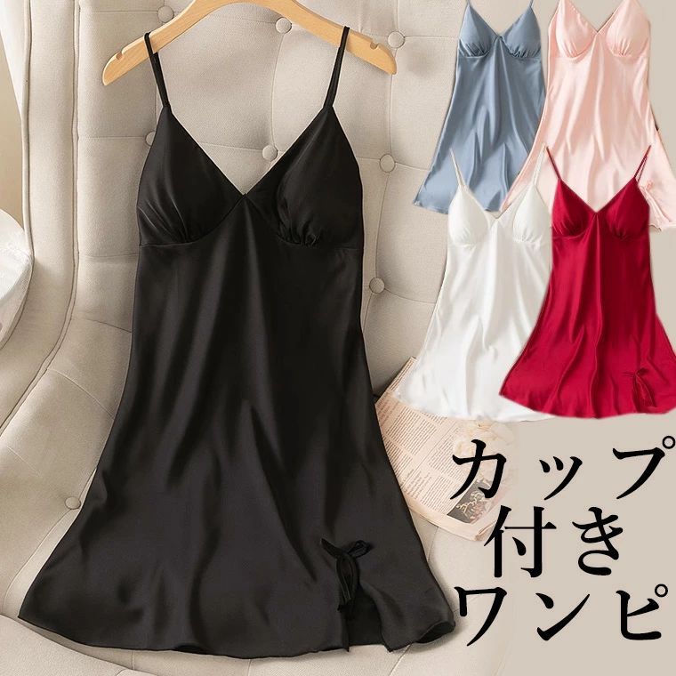 「スーパーSALEで半額」インナーやルームウェアにも 締め付けない カップ付きワンピース キャミソールワンピ ネグリジェ サテン チュニック丈 膝上 ミニ丈 ミニワンピ 重ね着 アンダーフリー