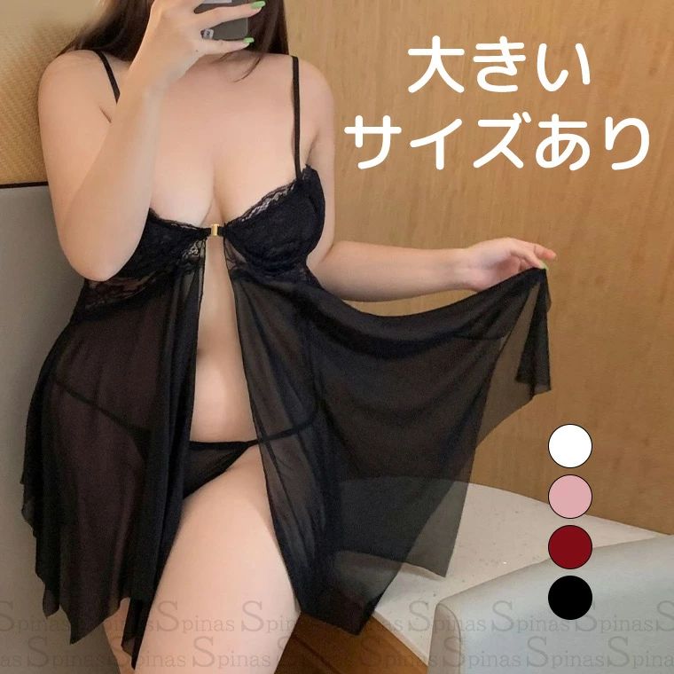 【送料無料】120kgさんもOK 5XLまで 大きいサイズ 可愛い レース キャミソールワンピ ネグリジェ サテン 膝上 ミニ丈 ミニワンピ 重ね着 アンダーフリー 黒 ブラック フロントホック メイド服 第三弾