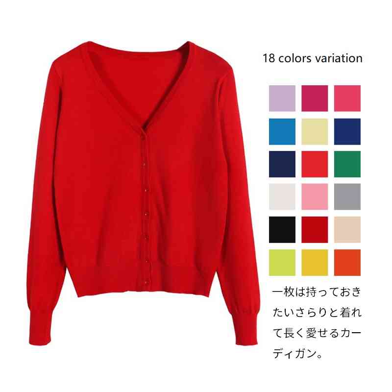 一枚は持っておきたいさらりと着れて長く愛せるカーディガン。 薄めな素材感、軽くて肌にも優しい。 程よく開いたVネック。 高級感ある貝ボタン風のこだわりデザイン。 裾までしっかりとボタンがあるからきちんと感たっぷり。 袖リブは適度なストレッチで上げても落ちづらい。 肌寒い季節の防寒や夏の冷房対策にも役立ちます。 デイリーからオフィスまで季節問わずマルチに使えるニットカーディガン。 サイズM L XL 2XL 3XL 4XL 5XL 6XLサイズについての説明【M】着丈55-56cm 肩幅34-35cm バスト86-88cm 袖丈55-56cm 【L】着丈57-58cm 肩幅35-36cm バスト92-94cm 袖丈57-58cm 【XL】着丈59-60cm 肩幅36-37cm バスト96-98cm 袖丈58-59cm 【2XL】着丈60-61cm 肩幅38-39cm バスト100-102cm 袖丈59-60cm 【3XL】着丈60-61cm 肩幅39-40cm バスト104-106cm 袖丈60-61cm 【4XL】着丈61-62cm 肩幅41-42cm バスト108-120cm 袖丈60-61cm 【5XL】着丈62-63cm 肩幅42-43cm バスト112-113cm 袖丈61-62cm 【6XL】着丈63-64cm 肩幅43-44cm バスト114-115cm 袖丈61-62cm素材綿 ナイロン ビスコース色ホワイト ピンク グレー ブラック レッド ベージュ シーグリーン イエロー オレンジ パープル ローズマダー ローズレッド ブルー クリームイエロー ロイヤルブルー ネイビー トマトレッド フォレストグリーン備考 ●サイズ詳細等の測り方はスタッフ間で統一、徹底はしておりますが、実寸は商品によって若干の誤差(1cm〜3cm )がある場合がございますので、予めご了承ください。 ●商品の色は、撮影時の光や、お客様のモニターの色具合などにより、実際の商品と異なる場合がございます。 あらかじめ、ご了承ください。 ●製品によっては、生地の特性上、洗濯時に縮む場合がございますので洗濯時はご注意下さいませ。 ▼色味の強い製品によっては他の衣類などに色移りする場合もございますので、速やかに(脱水、乾燥等)するようにお願いいたします。 ▼生地によっては摩擦や汗、雨などで濡れた時は、他の製品に移染する恐れがございますので、着用の際はご注意下さい。 ▼生地の特性上、やや匂いが強く感じられるものもございます。 数日のご使用や陰干しなどで気になる匂いはほとんど感じられなくなります。