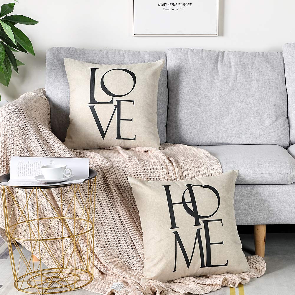 Otostar クッションカバー 2点セット おしゃれ 可愛い プリント リネン素材 隠しジッパー付き インテリア 室内装飾用 装飾用ピローカバー (45x45,love home) 2,388 ~