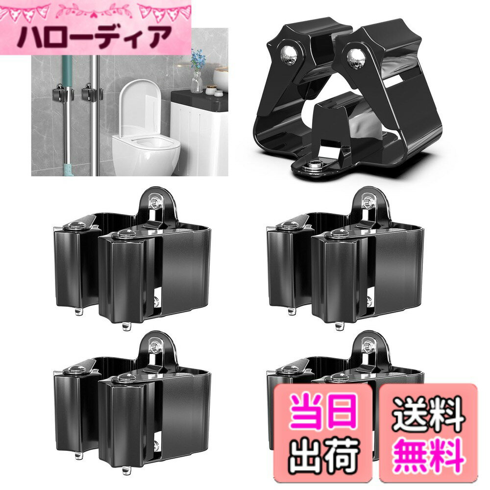【送料無料】3-H ステンレススチール ほうきホルダー 壁マウント 4個パック 高耐久 モップオーガナイザー 壁に取り付けられたほうき収納 安全な取り付け付き ランドリー ガレージ バスルーム用 色:オールブラック(ドリル)。、サイズ:4 1,699 ~