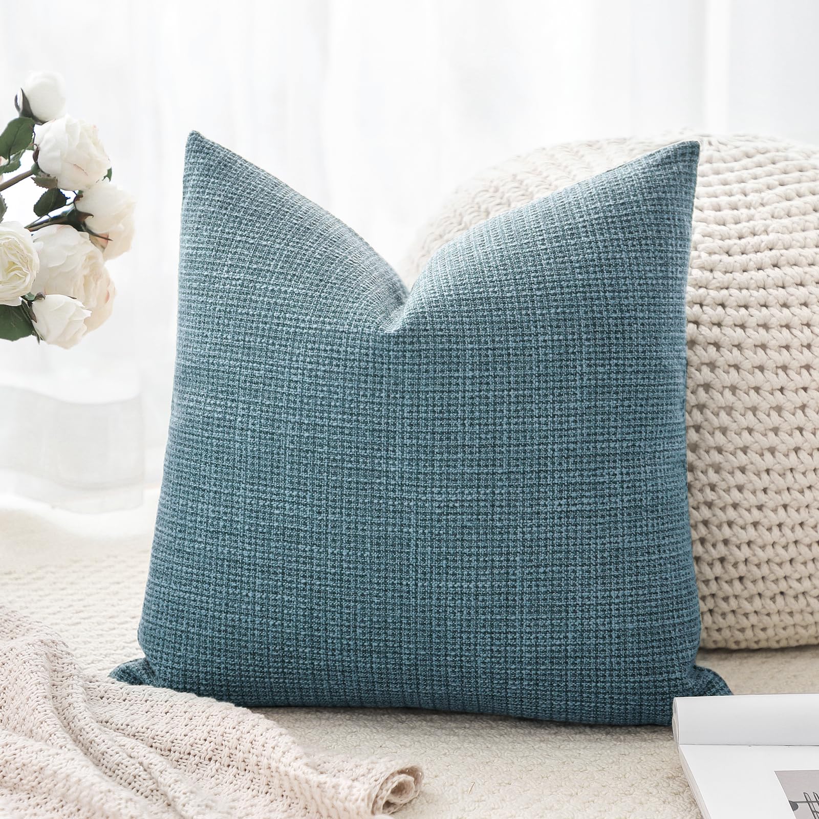Otostar クッションカバー 45x45cm 1枚 無地 おしゃれ 可愛い 麻 モダン ジッパー式 インテリア 室内装飾用 装飾用ピローカバー (45x45,ブルー) 1,722 ~