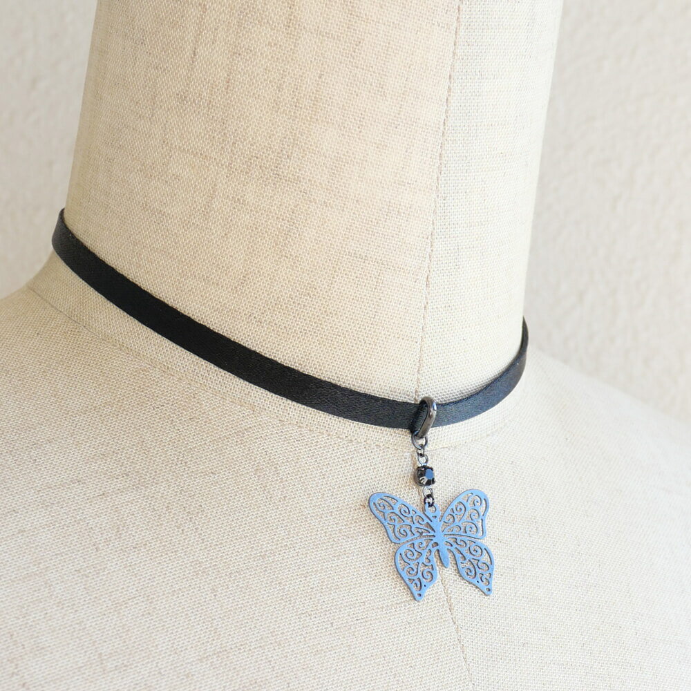 ステンド蝶ガンメタサテンチョーカーは、MOKUBAの細めのサテンリボンを使用したエレガントなアクセサリー ゴシック感漂う繊細なステンド蝶パーツが特徴で、ガンメタ仕上げの黒蝶バタフライが、首元に洗練された印象を与えます。 レディース向けにデザインされており、日常の装いにさりげなくゴスロリ感を演出するのに最適です。 【サイズ】 首回り 約30センチ+テール5センチ 蝶 縦2.2センチ×横2.7センチ 【材質】 メタル、ガラス 日本製 お揃いイヤリング ステンド 蝶 ガンメタ サテン チョーカー 細め レディース 2,860 ~