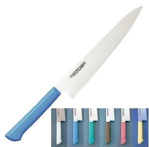 メーカー 片岡製作所 商品カテゴリ 調理器具>包丁・ナイフ・はさみ 発送目安 1日〜2日以内に発送予定(土日祝除) お支払方法 銀行振込・クレジットカード 送料 送料無料 特記事項 その他 ●メーカー品番:MCGK-210●サイズ(cm):21●全長(mm):330●質量(g):130●背厚(mm):2.2●カラー:ピンク ◆ ●マスターコック抗菌カラー庖丁材質刀身:モリブデン・バナジウム鋼ハンドル:ノバロンAGZ330(銀系無機抗菌剤):入りポリプロピレン樹脂(耐熱温度110度):●多彩なカラーバリエーションハンドルのカラーは6色あり、肉類、魚貝類、野菜、果実、パン類、加工済食品など食品別に利用できるので衛生管理ができます。 【切れ味の鋭さと特長】●本研刃造りプロの技術者により、本刃付けする前に研ぎなおしを容易にするため、水砥の荒砥・中砥を使用し、刃基を研ぎだしてあります。 ●本刃付け砥石による本格的な刃付けを施し、鋭い切れ味を長く持続させます。 ●サブゼロ処理1050度で焼き入れ後に、.73度以下に冷却する特別な処理により高い硬度と靭性を与え、切れ味を一段と高めてあります。 ●抗菌効果プラスチック製ハンドルに抗菌剤が配合してあり、抗菌効果抜群です。 ※御注文の際は、色を御指定ください。 ※庖丁の表示サイズは、すべて刃渡り寸法となっております。 ※抗菌 片岡製作所 片岡 MCGK210P マスターコック 牛刀 210 MCGK210P 5,347 ~