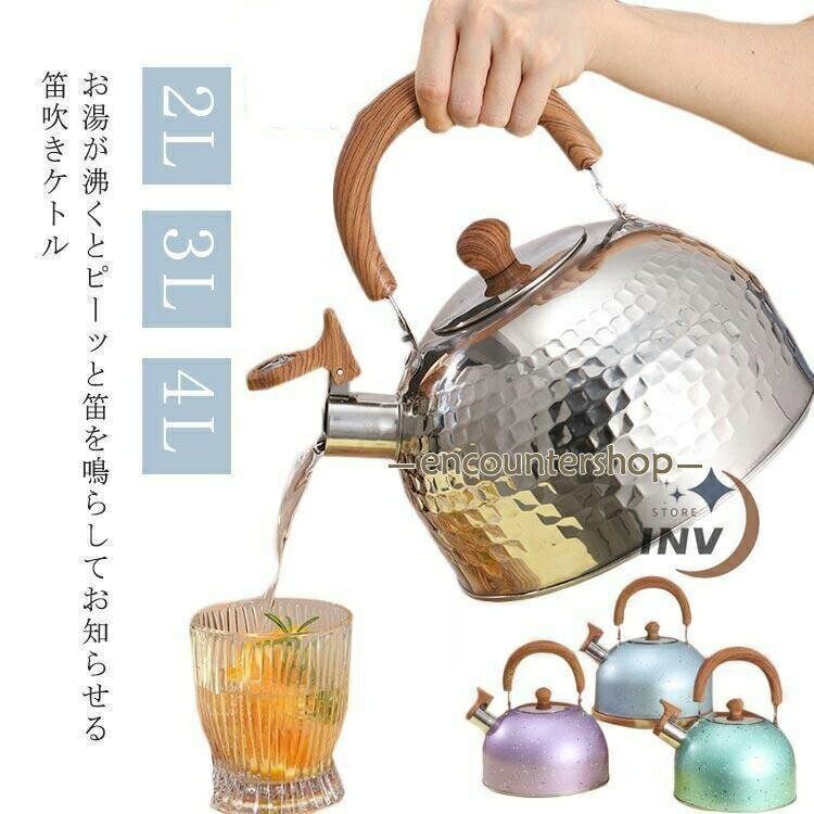 やかん ヤカン 3L 笛吹きケトル ステンレス製 広口 湯沸かし 木目調ハンドル タッチボタン 簡単開閉 大容量 IH対応 ガス対応 かわいい 家庭用 調理器具 キャンプ 5,016 ~