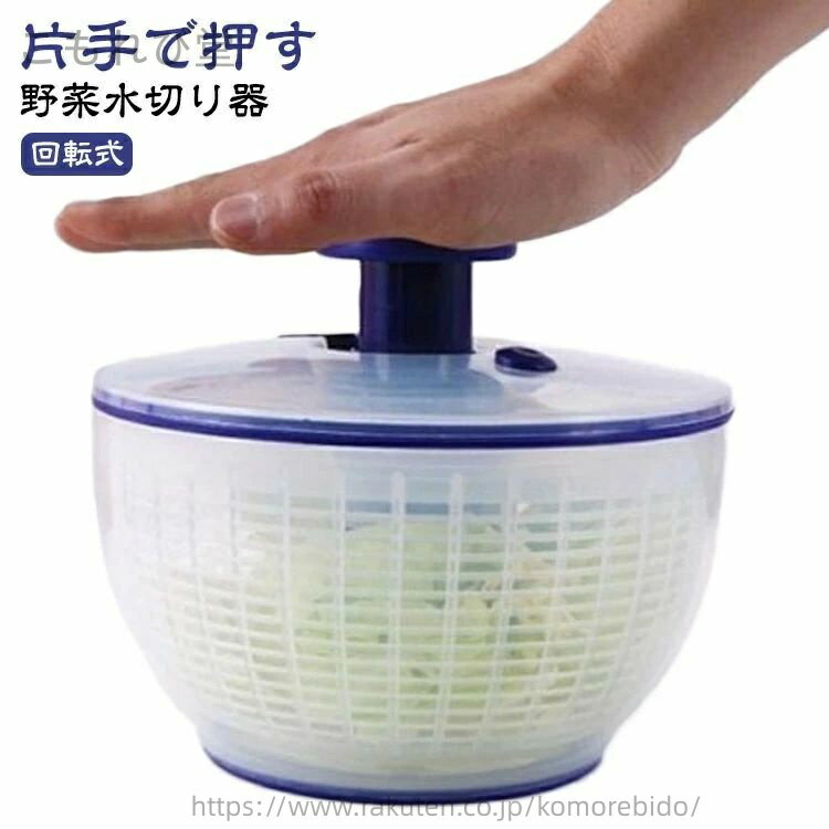 片手で押す 野菜水切り器押すだけ、かんたん野菜の水切りに片手で簡単に野菜の水切りができるサラダスピナー。 しっかり水切りをすれば、ドレッシングもしっかりからまり、より美味しいサラダに サイズ F サイズについての説明 サイズ:27.2*15.5*16.7cm 素材 PP TPR 色 ホワイトxブルー 備考 ●サイズ詳細等の測り方はスタッフ間で統一、徹底はしておりますが、実寸は商品によって若干の誤差(1cm〜3cm )がある場合がございますので、予めご了承ください。 ●製造ロットにより、細部形状の違いや、同色でも色味に多少の誤差が生じます。 ●パッケージは改良のため予告なく仕様を変更する場合があります。 ▼商品の色は、撮影時の光や、お客様のモニターの色具合などにより、実際の商品と異なる場合がございます。 あらかじめ、ご了承ください。 ▼生地の特性上、やや匂いが強く感じられるものもございます。 数日のご使用や陰干しなどで気になる匂いはほとんど感じられなくなります。 ▼同じ商品でも生産時期により形やサイズ、カラーに多少の誤差が生じる場合もございます。 ▼他店舗でも在庫を共有して販売をしている為、受注後欠品となる場合もございます。 予め、ご了承お願い申し上げます。 ▼出荷前に全て検品を行っておりますが、万が一商品に不具合があった場合は、お問い合わせフォームまたはメールよりご連絡頂けます様お願い申し上げます。 速やかに対応致しますのでご安心ください。