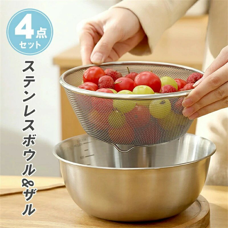 テンレスボウル&ザル 4点セット 丈夫 耐食性 高級感 送料無料 5,890 ~