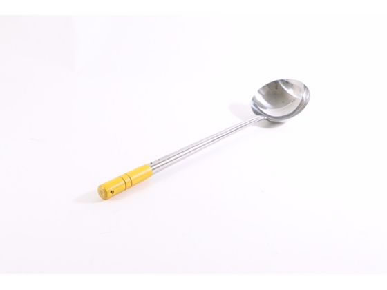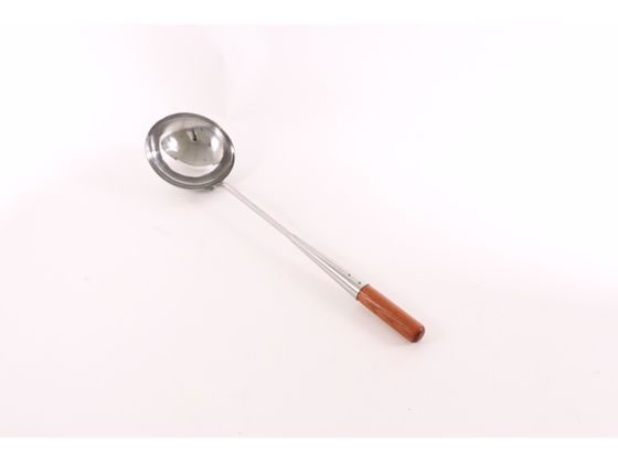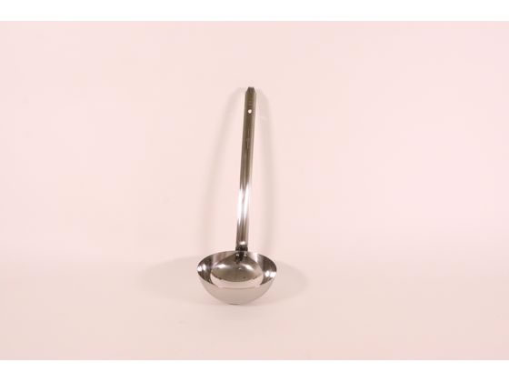 サイズ:小 約長さ24.5cm 仕様・混率:表面:シリコーンゴム芯材:ナイロンナイロン(耐熱温度:180度)、シリコーンゴム(耐熱温度:200度) 耐熱温度の高いシリコーン素材を使った、鍋肌に沿ってすくいやすい形のレードルです。 鍋やフライパンを傷つけにくく、色は食材による色移りが目立ちにくいよう黒色にしています。