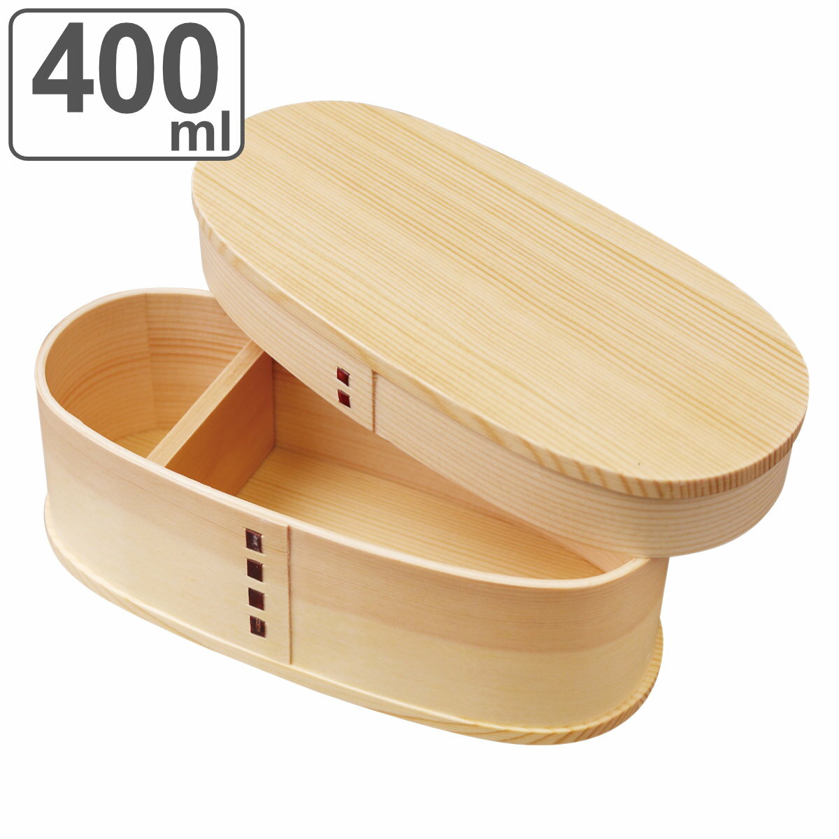 サイズ約 幅18.5×奥行8.5×高さ6.3(cm)容量約 400ml内容量1個材質天然杉(ウレタン塗装)生産国日本製原産国北米食器洗い乾燥機使用不可電子レンジ使用不可注意事項※商品ページ内には別の商品を含む画像を使用しています備考※こちらの商品はひとつひとつ手作業による塗り製品です。 その為、木目の出方には個体差があり、塗りむら・微かなキズなどがある場合がございます。 予めご了承下さい。 区分返品・キャンセル区分(小型商品)ギフトラッピングページを見る●ナノ粒子レベルのコーティングを施し、撥水力と光沢を長持ちさせ、耐久性を高めた日本製の曲げわっぱです。 ●天然杉本来の色を貴重としたウレタン塗装を施し、木のぬくもりを感じる味わいのあるお弁当箱です。 ●仕切り付きでおかずが片寄りにくく、風合いを損なうことなく、おかずとご飯をしっかり区切ることができます。 ●スリムタイプなので片手で持ちやすく、屋外でのテーブルがない場所の使用にも便利です。 おすすめポイント※ご覧のページは400mlサイズのページです。 耐久性を高めた曲げわっぱ弁当箱ナノ粒子レベルのコーティングを施し、撥水力と光沢を長持ちさせ、耐久性を高めた日本製の曲げわっぱです。 天然杉本来の色を貴重としたウレタン塗装を施し、木のぬくもりを感じる味わいのあるお弁当箱です。 スリムタイプなので片手で持ちやすく、屋外でのテーブルがない場所の使用にも便利です。 仕切り付きで片寄りにくい仕切り付きでおかずが片寄りにくく、風合いを損なうことなく、おかずとご飯をしっかり区切ることができます。 商品画像シリーズ紹介1段 700ml1段 400ml1段 500ml関連キーワード:ランチグッズ お弁当グッズ 通勤 通学 登校 会社 ランチ 昼食 中学生 高校生 大学生 社会人 レディース 女の子 女子 女性 メンズ 男の子 男子 男性 LH12946 LH1486 LH1490 関連商品はこちらお弁当箱 かぶせ型一段弁当箱 1段 700ml5,830円お弁当箱 かぶせ型一段弁当箱 小 1段 5005,830円お弁当箱 1段 490ml 曲げわっぱ 日本製6,380円弁当箱 曲げわっぱ 1段 500ml 一段弁当3,700円弁当箱 曲げわっぱ 1段 400ml スリム 3,700円弁当箱 曲げわっぱ 1段 700ml 小判型 3,800円弁当箱 曲げわっぱ 1段 700ml わっぱ一3,800円お弁当箱 小判一段弁当 木製 1段 700ml4,620円お弁当箱 小判一段弁当 木製 1段 600ml4,400円弁当箱 わっぱ弁当箱 700ml 3,160円弁当箱 わっぱ弁当箱 500ml 3,050円お弁当箱 曲げわっぱ 400ml 1段 小判型2,660円 お弁当箱 かぶせ型スリム弁当箱 1段 400ml 木製 ( 弁当箱 曲げわっぱ弁当箱 ランチボックス 一段 小判型 大人 お弁当 弁当 仕切り付き 天然木 和風 日本製 ) 5,830 ~