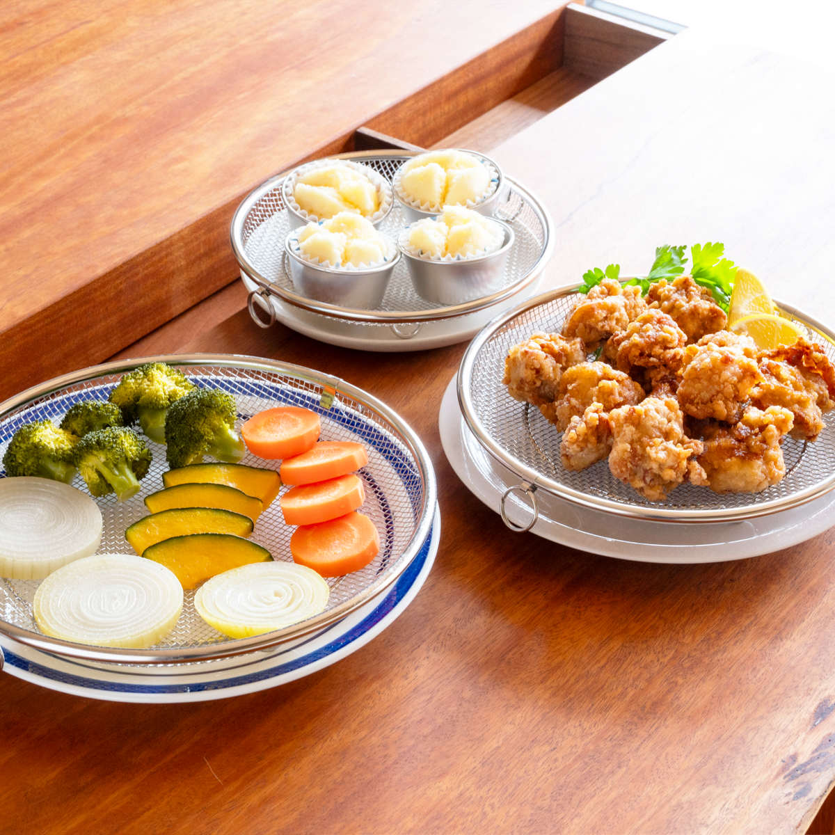 【送料無料】万能ザル ステンレス 平ザル 油きり足付 ひらざる 足付き 蒸しざる 蒸し器 蒸し 3,456 ~