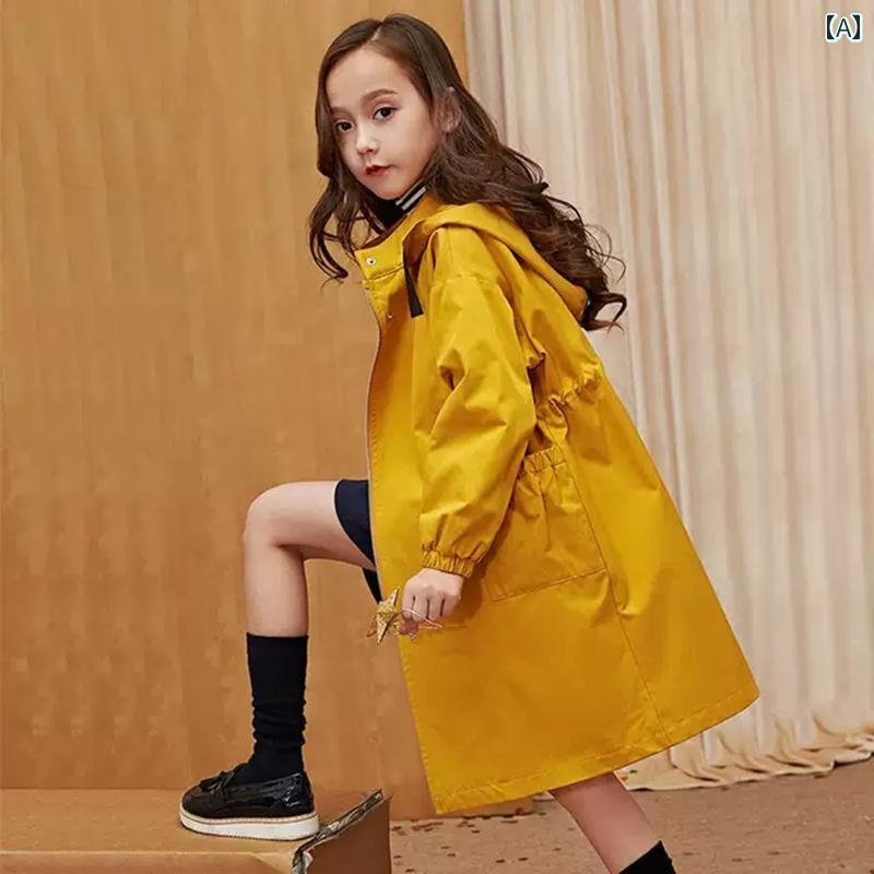 ウインドブレーカーコートキッズ女の子子供服アウター春秋韓国無地ロング丈防風カジュアルイエローグリーン