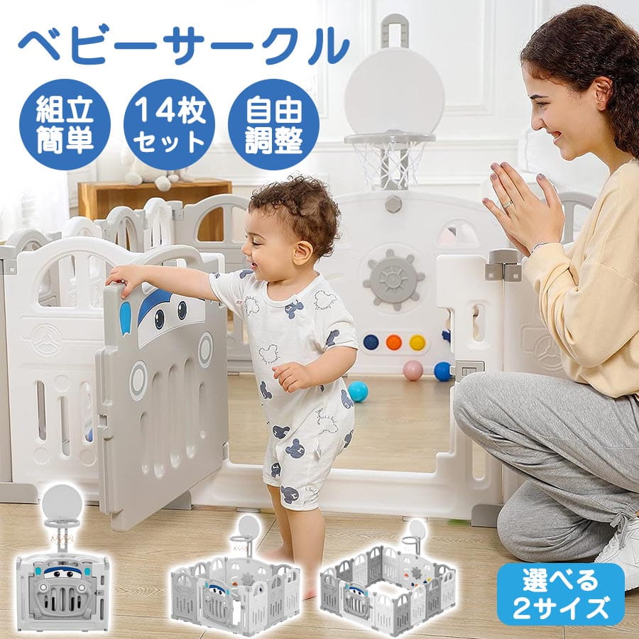 商品情報 【商品名】 ベビーサークル 折りたたみ ベビーサークル 14枚セット すべり台 ブランコ 163*163cm 163*206cm 変形可能 扉付き バスケットゴール付き おもちゃパネル ベビーゲート ベビーフェンス 簡単組立 柵 キッズ 赤ちゃん プラスチック プレゼント かわいい 【商品仕様】 カラー:グレーホワイト 素材:HDPE 梱包サイズ 幅40.5×奥行81.5×高さ29cm 重量(Net weight) 14kg 重量(Gross weight) 15.7kg 対象年齢 :5ヶ月? 生産国 中国 【おススメポイント】 【自由に変形でき!】 プジョイントを半抜き状態まで緩め、サークルは折りたたみ可能・変形可能になります。 お部屋に合わせてお好みの形にアレンジすることができます。 【ハンドル+音が鳴るドアパネル】 ごっこ遊びで視力や聴力など基本的な身体機能の発達はもちろん、想像力も鍛えられます。 【折りたたみ式 収納便利】 便利な折りたたみ式は、急な来客時でもコンパクトに収納が出来ます。 お掃除したい時もらくらくです。 【組み立て簡単】 工具を使わず、ドアパネルを差し込むだけで簡単に組み立てができます。 【より安全な高さ】 パネルの高さはたっぷりの61m、安全性を考慮した高さで、お子様が乗り越えにくい仕様です。 【角丸デザイン】 安心の角丸設計で、お子様の安全を守ります。 【安全保証】 【EN71】取得済み!安全でお子様に優しくて頼もしい製品です。 【4in1,1台4役!】 サークル+ブランコ+滑り台+バスケットゴール,家で遊園地を作れます! 【在庫に関して】 在庫数の更新は随時行っておりますが、お買い上げいただいた商品が、品切れになってしまうこともございます。 その場合、お客様には必ず連絡をいたしますが、万が一入荷予定がない場合は、キャンセルさせていただく場合もございますことをあらかじめご了承ください。 【納期について】 ◆納期について商品ページに記載されています。 ご参考の上でご購入ください。 ◆注文個数によりお届け日が変わることがあります。 至急の場合、予め使用希望日をご連絡ください。 ◆天候や交通事情等の都合により配送期間は前後いたします。 予めご承知下さいませ。 【返品・交換について】 商品の手配後はご注文内容変更・キャンセルを承ることができなくなりますのでご了承ください。 万が一お届け商品がご注文内容と異なったり、欠陥、汚損があった場合、交換、もしくは返金させて頂きます。 【注意事項】 ▲サイズは素人採寸のため、1-3cm前後の誤差が生じる場合がございます。 予めご了承下さいませ。 ▲モニターの発色の具合によって実物とと色が異なる場合がございます。 実物に近いカラーはカラーバリエーションをご参考ください。 ▲商品発送後の住所変更、サイズとカラーの変更、キャンセルはお受けできません。 ▲初期不良品以外の返品、返金はお受けできませんので、予めご了承ください。 ▲イメージ違い、サイズ及びカラーの買い間違えなどによる返品、返金、交換はお受けできません。 予めご了承ください。 ▲万一汚れや破損などの不良品が届いた場合、必ず到着日を含め3日以内にご連絡をください。 ▲現在、弊ショップの包装につきましては、簡易包装にて郵送しておりますので、プレゼント用のラッピング包装、熨斗の添付はできません。 ご了承の上で、お買い上げください。 ▲輸入品のため、メーカーや仕入先の在庫保管方法の違いや、長距離輸送や航空輸送により、多少細かなキズや汚れ等が見られる場合がございます。 ▲ご存知の通り海外の工場での縫製は日本の工場と比べますと、細かい点で雑に見えるものがございます。 不良品ではありません。