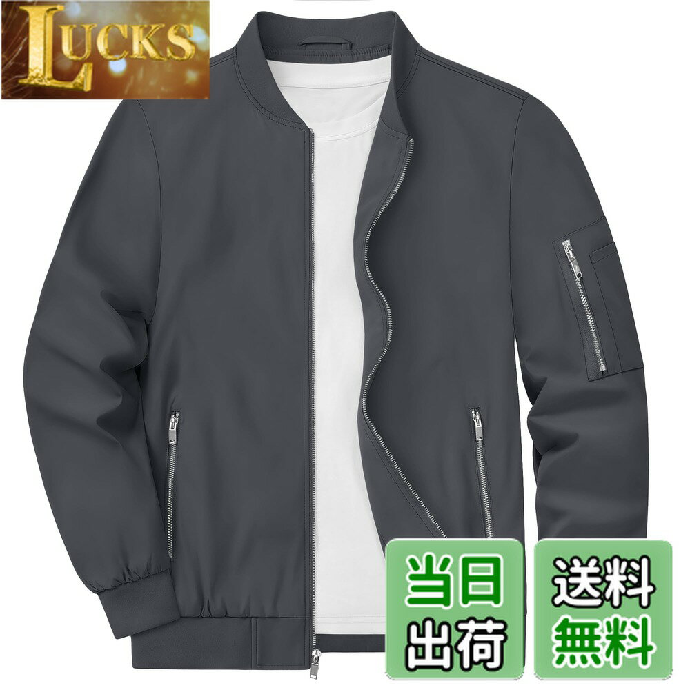 【送料無料】[KEFITEVD] ジャンパー メンズ 薄手 撥水 アウター 防風 ブルゾン 大きいサイズ カジュアルジャケット 無地 ジャケット 秋服 スタジャン 紳士ブルゾン 灰 グレー L 6,201 ~