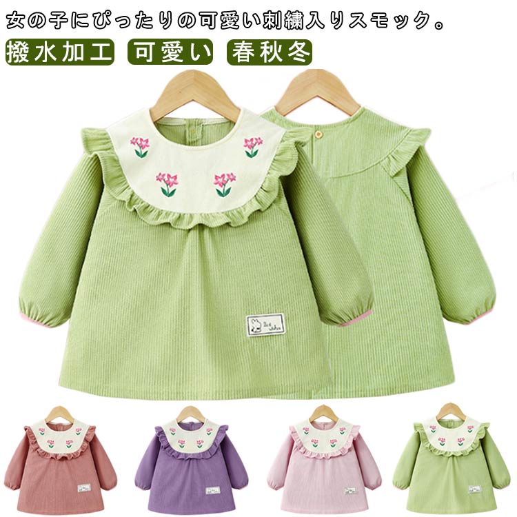 スモック 子供服 女の子 ブラウス 長袖 コーデュロイ 刺繍 お砂場着 砂遊び ベビースモック 可愛い お食事エプロン 汚れ防止 絵画 外遊び お食事 エプロン 保育園 幼稚園 赤ちゃん 幼児 防水 春秋冬 送料無料 1,399 ~