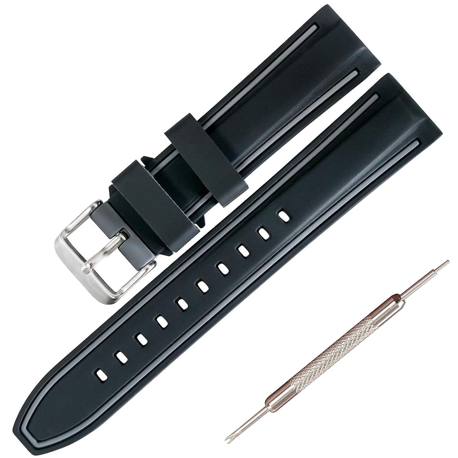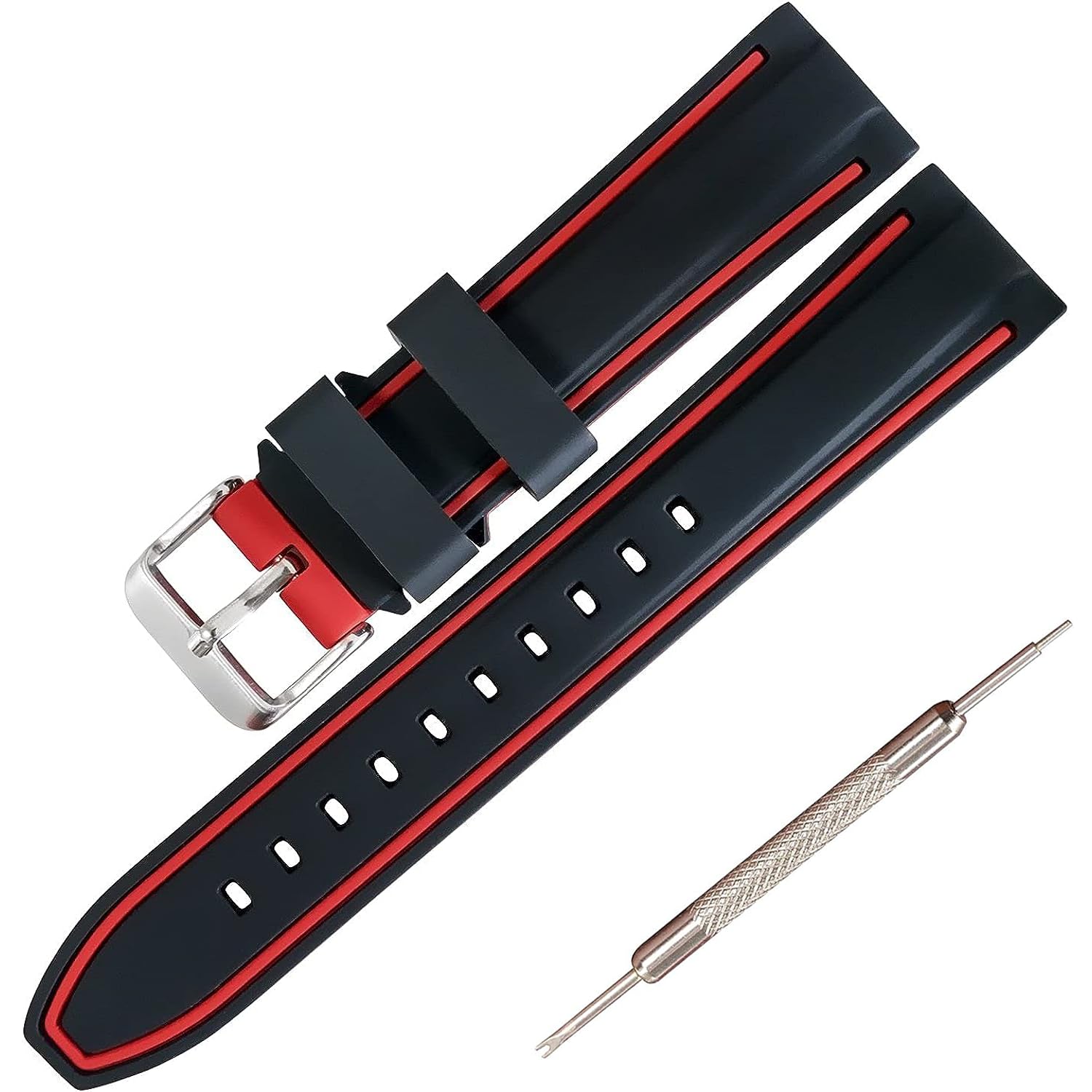 商品情報商品の説明主な仕様 時計ベルトの装着感を重視し、手触りが良い高質シリコンで作られており、ベルトの裏面は通気・排汗の設計になっており、汗や水に濡れても乾きが早く爽やかにご利用いただけます。包装の内容 : イージークイックピン付きシリコン時計バンド*1 時計ばんど交換ツール*1 日本語取替え説明書*1うで時計ラグ幅18ミリ 19ミリ 20ミリ 21ミリ 22ミリ 24ミリの腕時計やスマートウォッチに適用します。購入前に時計のラグ幅をご確認ください。本体はシリコンラバーで作られており、完全防水で丸洗いでき、いつも清潔に保持できます。尾錠はステンレススチール製でスポーティー感が溢れる設計になり、ラフなファッションに溶け込む、遊び心満載のデザインが揃っております。バンド長さは125mm/75mmで腕周り約150mm~200mmの方に適用します。つまみ付きのスプリングバー付きなので、工具なしで時計バンドを交換できます。