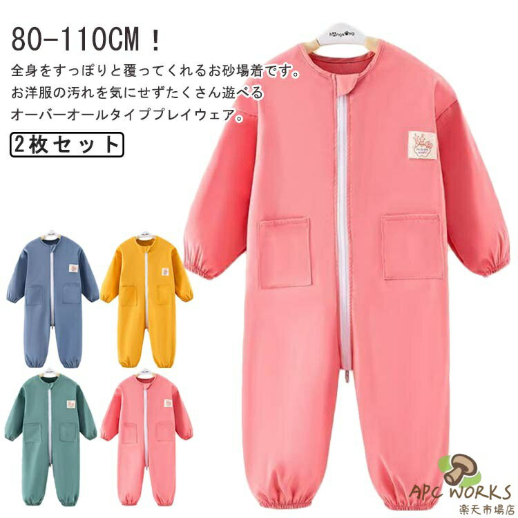 【送料無料】つなぎ 2枚セット 子供 お砂場着 プレイウェア 長袖 汚れ防止 キッズ スモック 男の子 オーバーオール ロンパース 女の子 プルオーバー 子ども ベビー ジャンプスーツ ダブルファスナー付き 遊び着 子供服 水遊び 小学生 幼稚園 1,930 ~