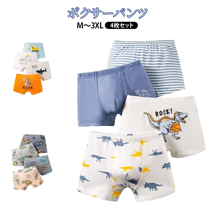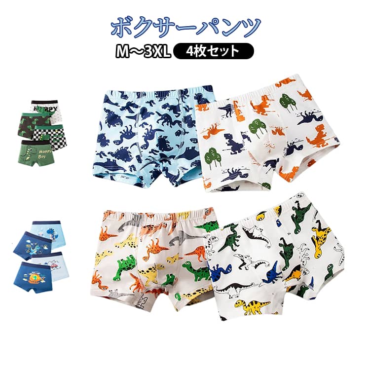 男の子 パンツ 4枚セット 下着 ボクサータイプ 子供パンツ 子供下着 キッズ 通気 ジュニア ボクサーパンツ ショーツ 子供 インナー ジュニア 肌着 下着 男子 ベビー 動物柄 恐竜 キッズ 幼稚園 小学生 大きいサイズ 4枚組 1,780 ~
